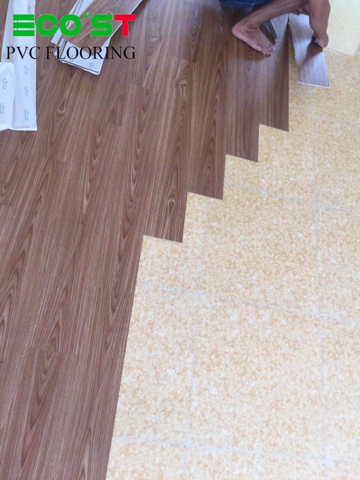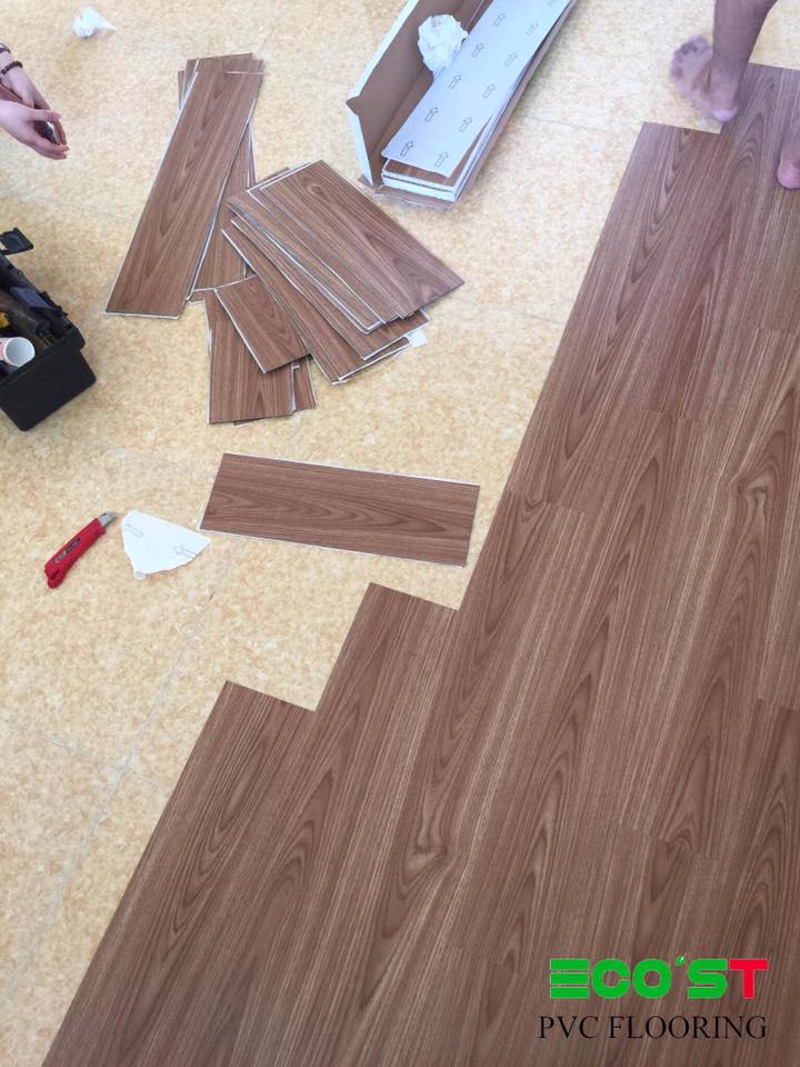 Hình ảnh Sàn nhựa tự dính trong quá trình thi công